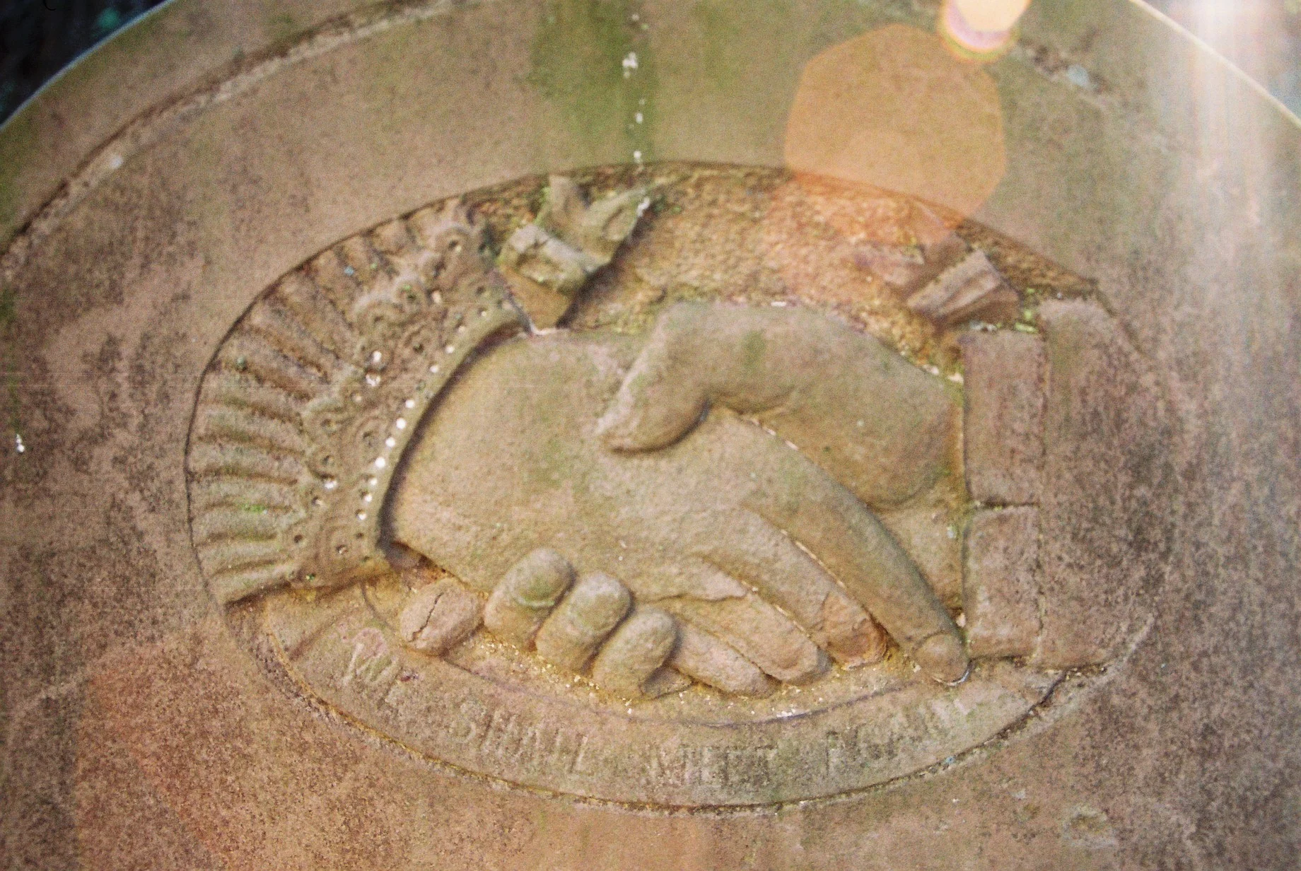 "We shall meet again". Found on a gravestone at the old Church Lane grave yard. The stone must have been painted once because you can still see remnants of the white paint.