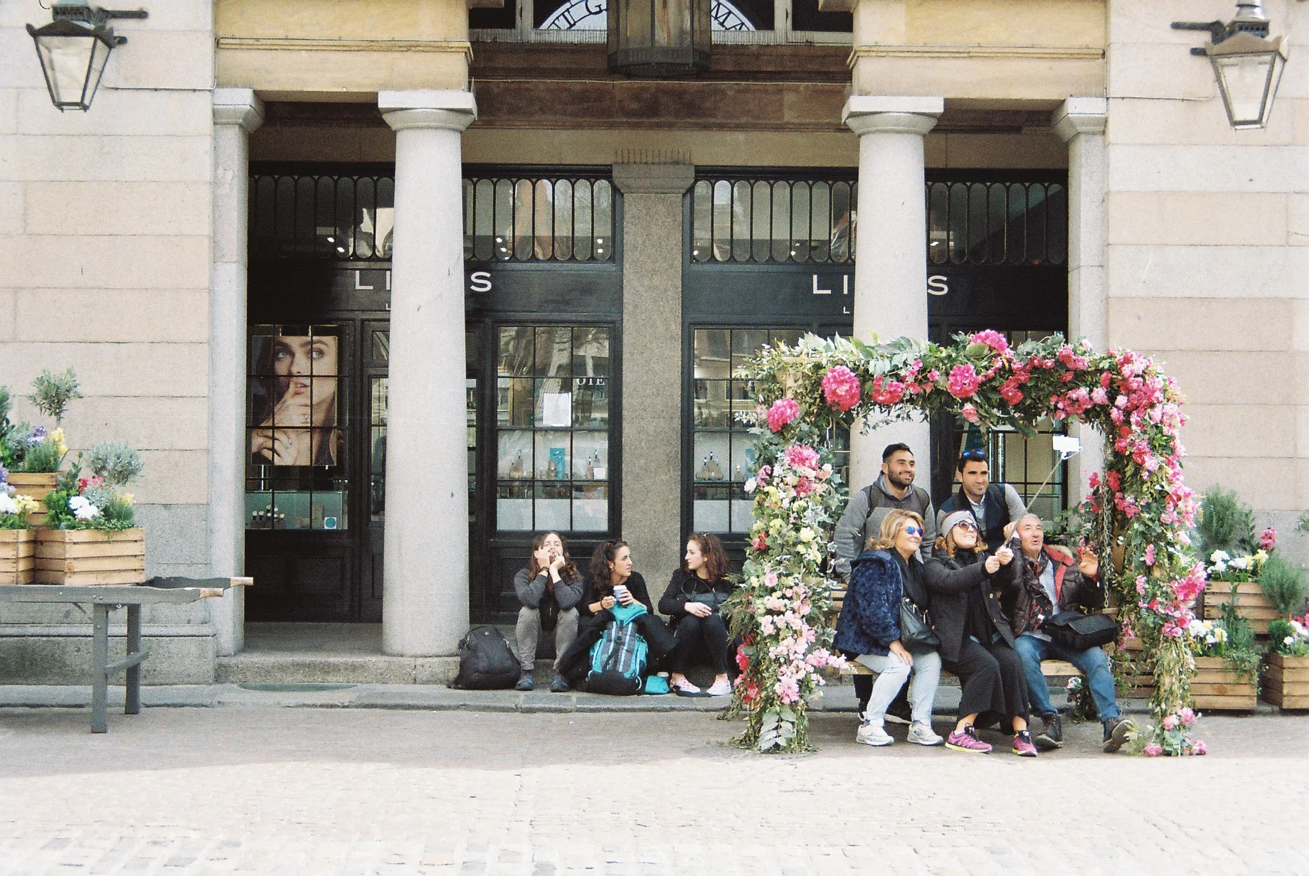 Covent Garden. Most "normal" shops have been replaced by luxury brands where only a selective few can afford to buy things, and the Piazza has been filled with benches and carts with flower boxes. On closer inspection the flowers are plastic, which could be an excuse for the fake colours in this picture - and sums up well what is happening with iconic places in London at the moment.