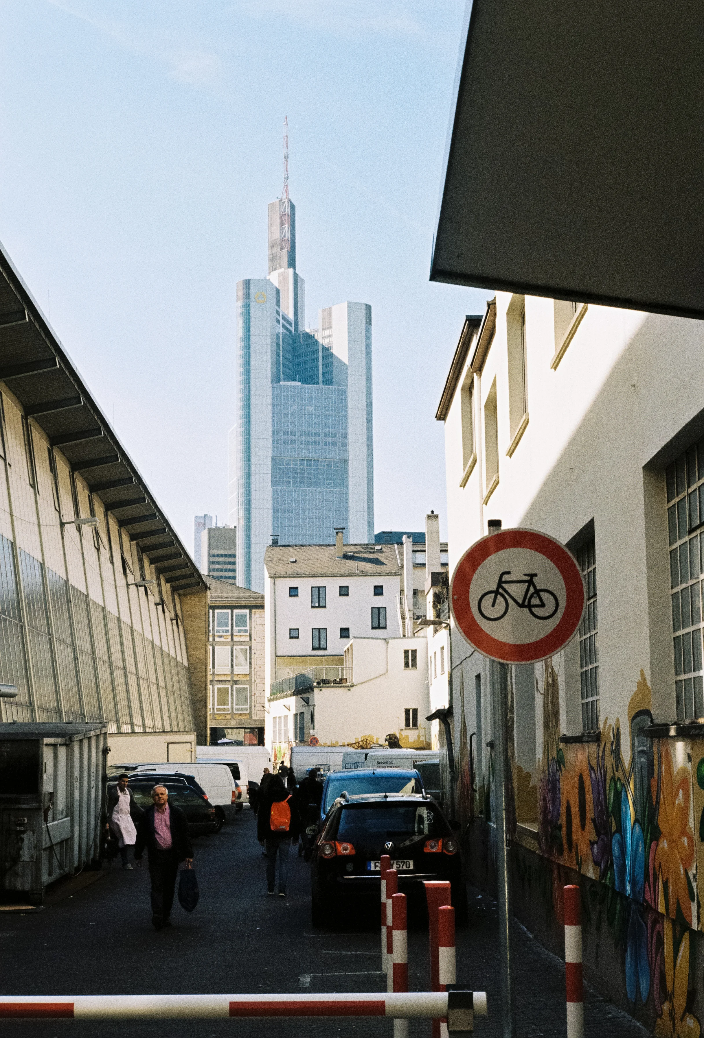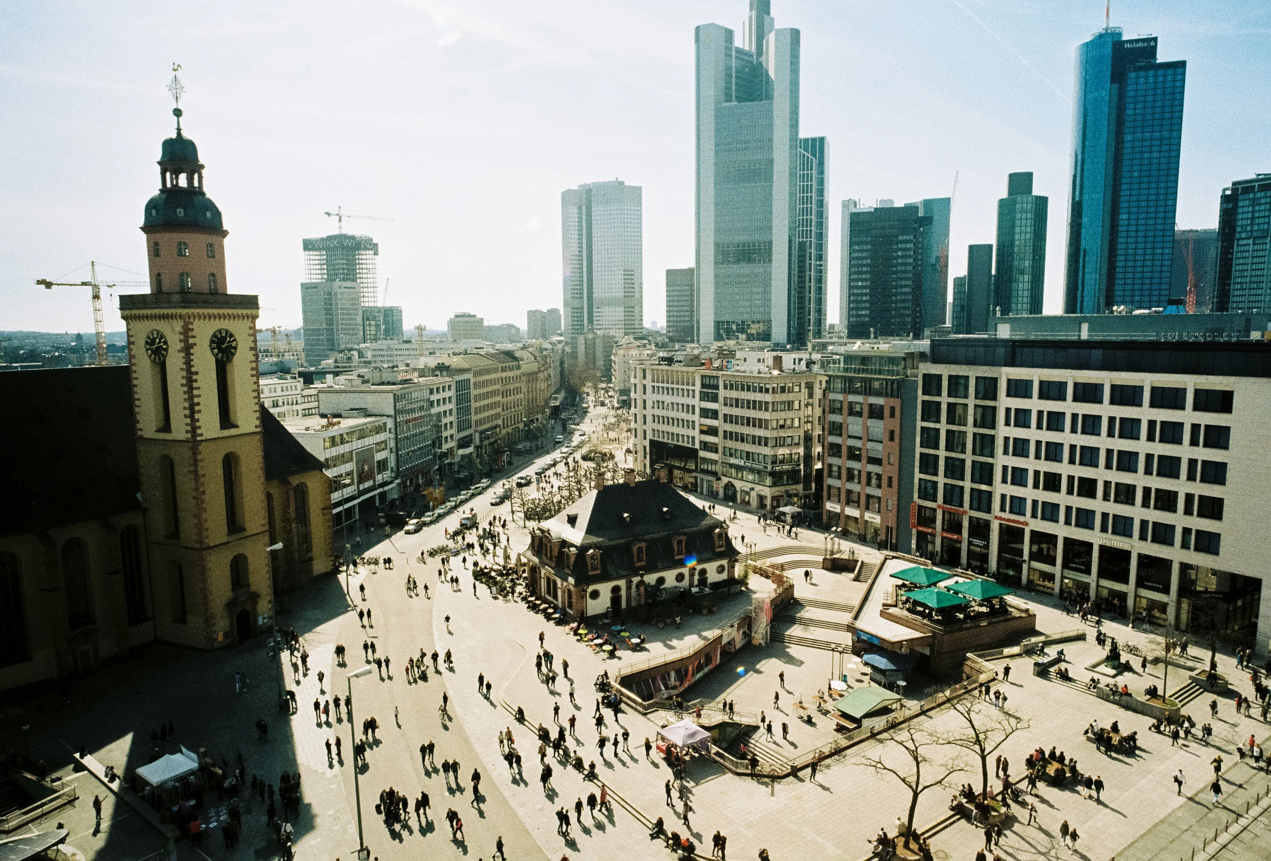 It was really too bright to take this photograph, so much so I manged to cut off the top of the Commerzbank building (because I couldn't see it!). What I found really interesting about this photograph when it came back was the pedestrian traffic, most are in pairs. Also some good shadows going on.