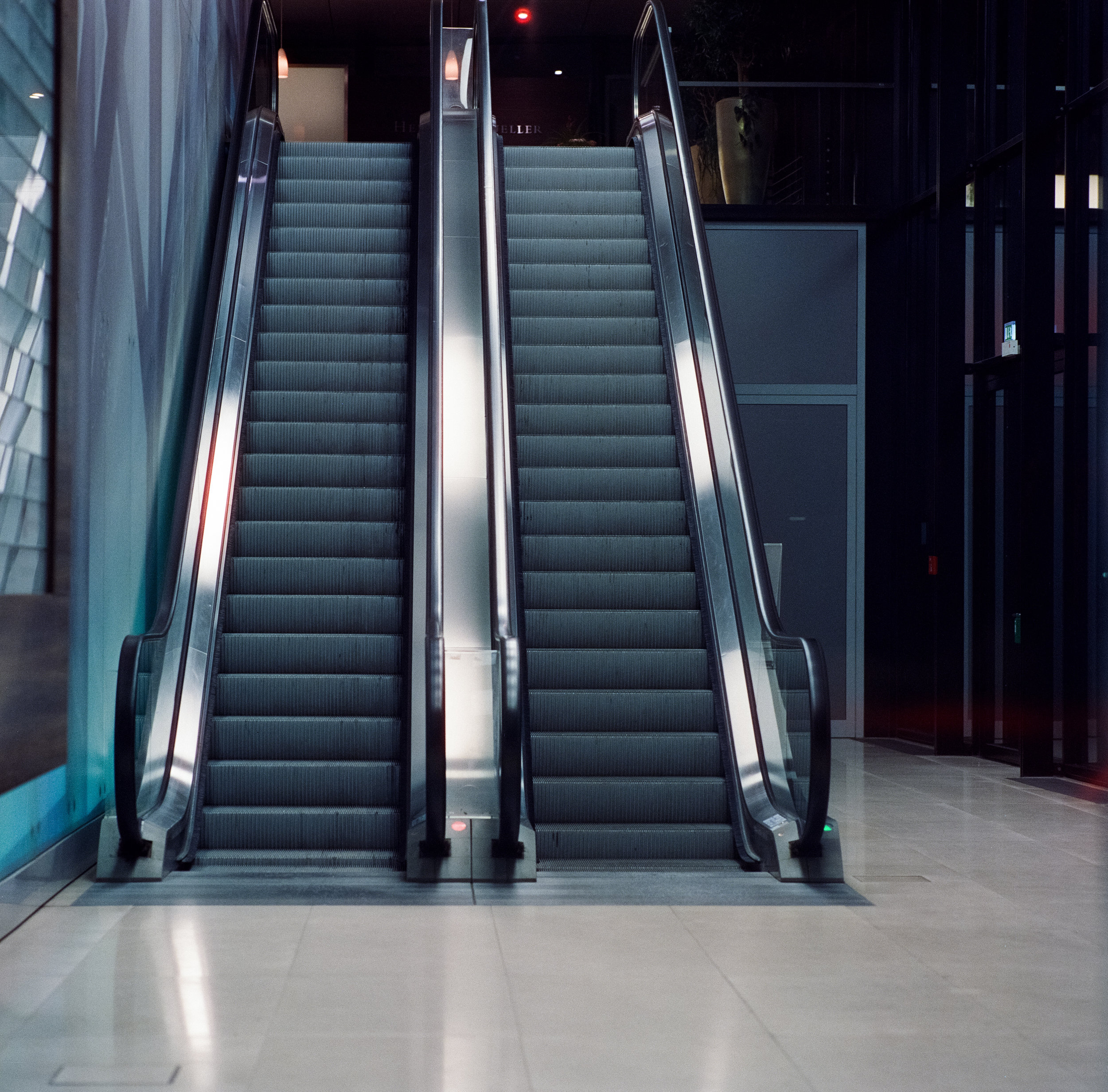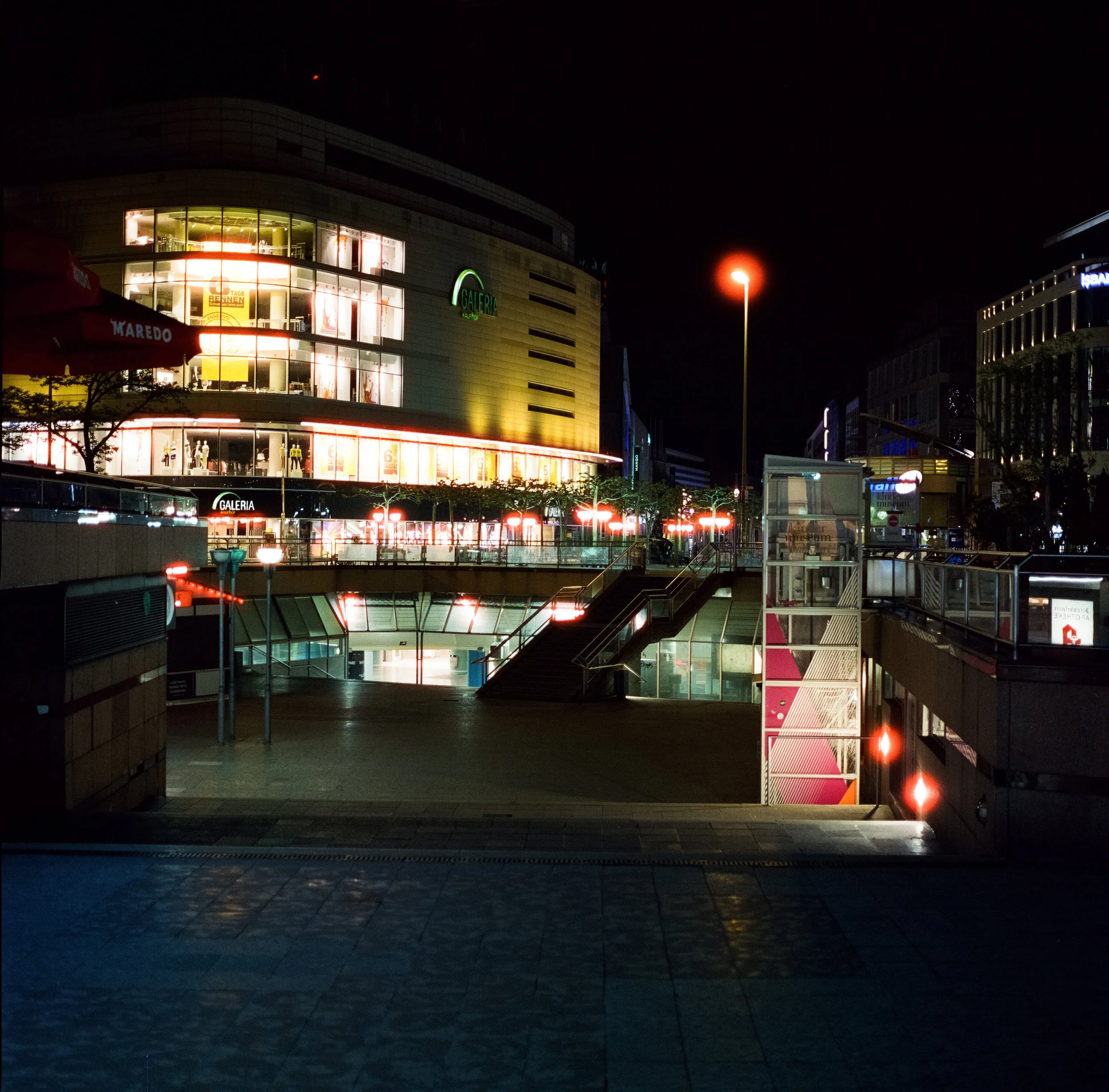 Even the escalators go to sleep. Check out the red street light at the top, you can see the effect of the anti-halation layer being removed. Otherwise a very clear shot as it is IS0 800.