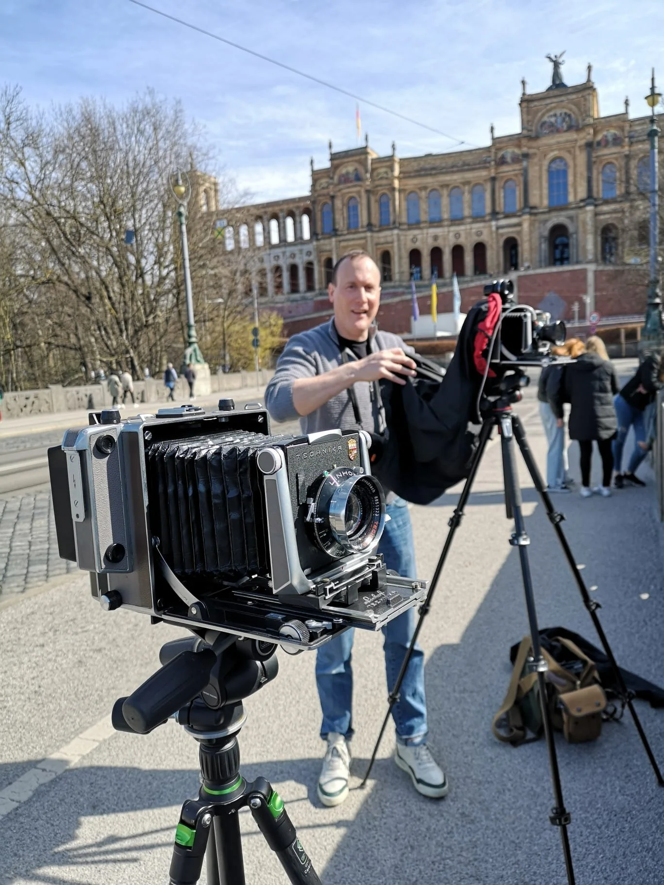 I went out for an impromptu photowalk one weekend months ago (I think March or April) just after I got my Linhof back from the factory, although I have only got around to putting this post up now. I was out with a fellow large format Munich friend and we decided to go shoot around the river Isar that goes right through the centre of Munich. The weather was a bit flat but we did the best with what we had. All shot on the trusty Fomapan 100 4x5 sheet film.
